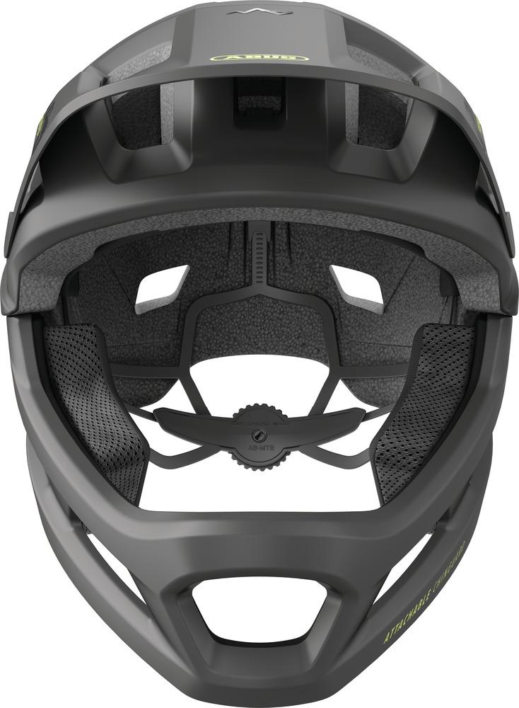EIN HELM FÜR MUTIGE KIDS Schneller, weiter, höher: Junge Mountainbiker sind besonders mutig, wenn sie ruppige Strecken heruntersausen oder abenteuerliche Trails erkunden. Ein effektiver Schutz ist also unabdingbar. Mit dem Fullface-Helm YouDrop FF ist jeder Nachwuchs-Profi gut geschützt wie seine Vorbilder aus der MTB-Szene. Egal, ob Groß oder Klein, ob auf dem Laufrad oder dem Mountainbike – der Helm eignet sich für alle Kids und Jugendlichen. Der Kinnschutz des Helmes sichert Gesichtspartien wie Kiefer oder Kinn ab und kann bei Bedarf entfernt werden. Als Open Face Variante wird der Helm so im Handumdrehen zum luftig-lässigen Begleiter auf der nächsten Radtour. Auch bei waghalsigen Sprüngen oder Downhill-Action sorgt das clevere Belüftungssystem des YouDrop FF für einen kühlen Kopf. Wer ins Schwitzen kommt, kann die komfortablen Polster im Helm herausnehmen und per Hand waschen. Ein abnehmbarer Schirm mit Break-Away-Funktion, integrierte Fliegennetze und unser MTB-spezifisches Verstellsystem runden das Gesamtpaket ab.