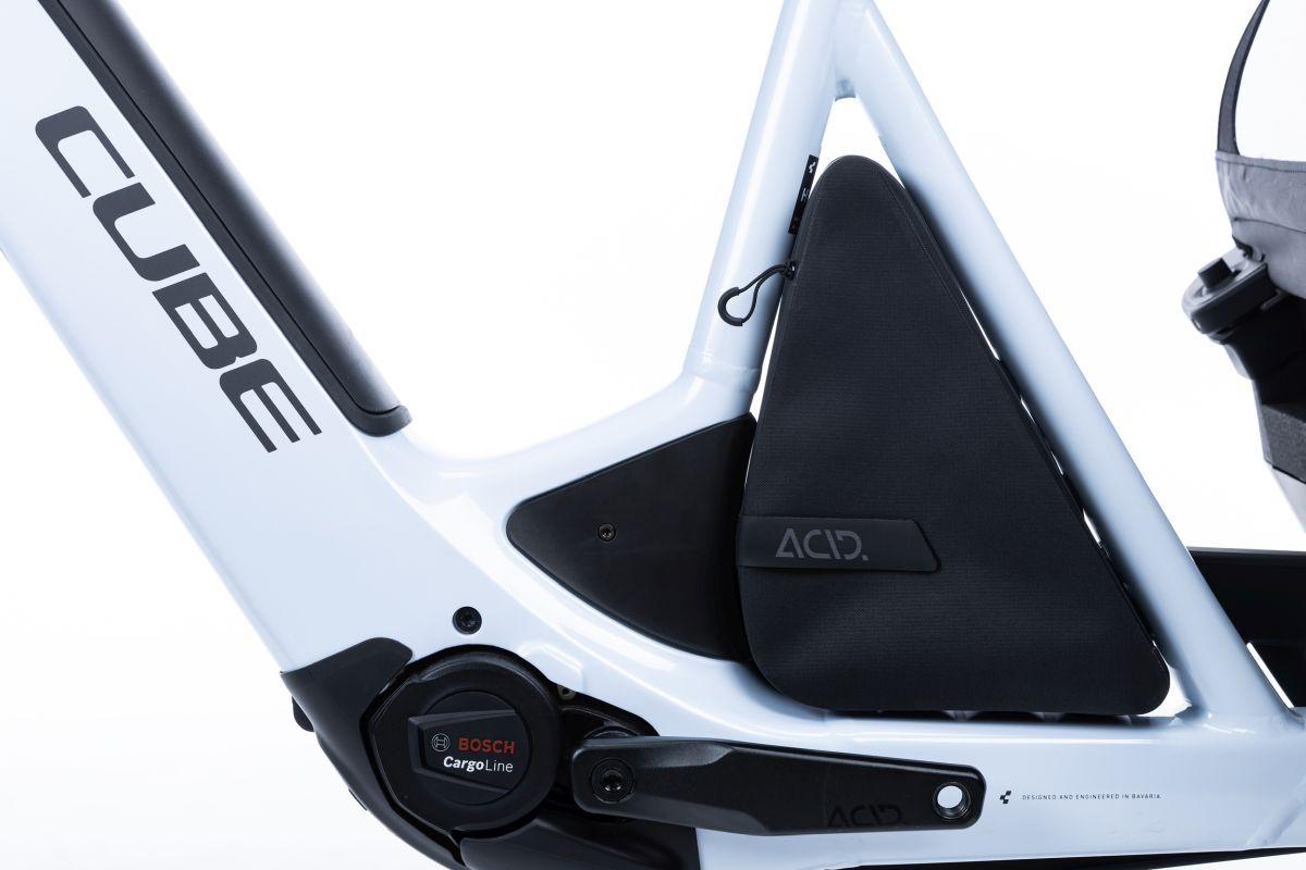 Die ACID Rahmentasche TRIKE 2 wurde speziell für das CUBE Cargobike TRIKE entwickelt. Sie ist passgenau aus hochwertigen Materialien gefertigt, verschweißt als auch wasserdicht. Im Rahmen befestigt, wird der vorhandene Platz perfekt genutzt und zusätzlicher Stauraum geschaffen. Reflektierende Elemente erhöhen die Sichtbarkeit und damit Sicherheit im Straßenverkehr.