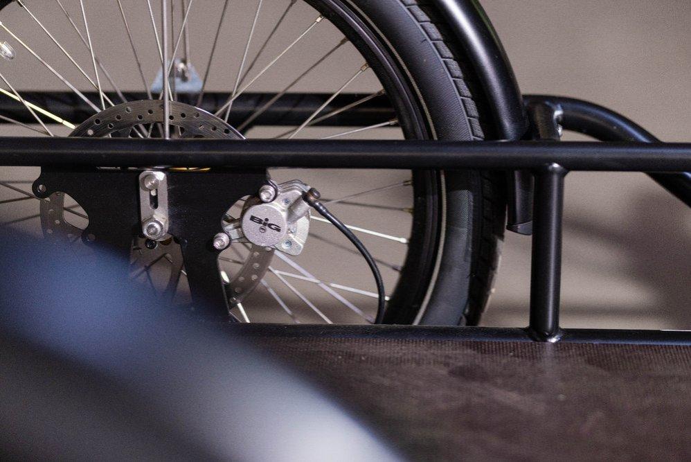 CARLA verfügt über eine hydraulische Auflaufbremse welche für mehr Fahrsicherheit sort. Danke der Bremse und der Dreirad-Konstruktion beeinflusst der Anhänger die Fahrt nur sehr wenig, selbs wenn er stark beladen ist. CARLA zeichnet sich durch herausragende Agilität und einen sehr kleinen Wendekreis aus. Der CARLA-Fahrradanhänger passt sehr gut an E-Bikes, Longtails und (Micro-)Cargobikes.