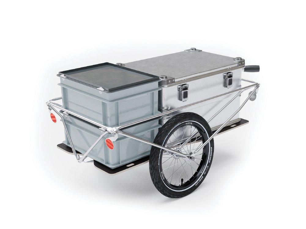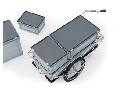 Der BOX 1.5 ist mit 68 cm genauso breit wie der BOX 1.0. Die Bodenplatte mit vielen Öffnungen ermöglicht es, die Ladung auch ohne Behälter einfach zu sichern. Behälter und Kisten können problemlos hineingestellt werden, ohne aufwendig gesichert zu werden.