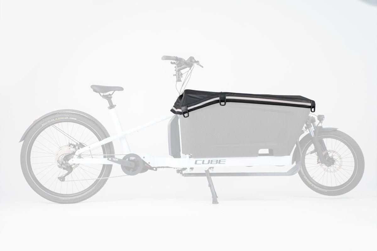Keine Garage? Mit dieser Plane kannst du die Ladebox des CUBE CARGO HYBRID mit CUBE Sitzbank CARGO abdecken und vor Regen und Schmutz schützen. Ein Teil der Plane kann geöffnet und zusammengerollt werden, so können die Kids teils windgeschützt chauffiert werden.