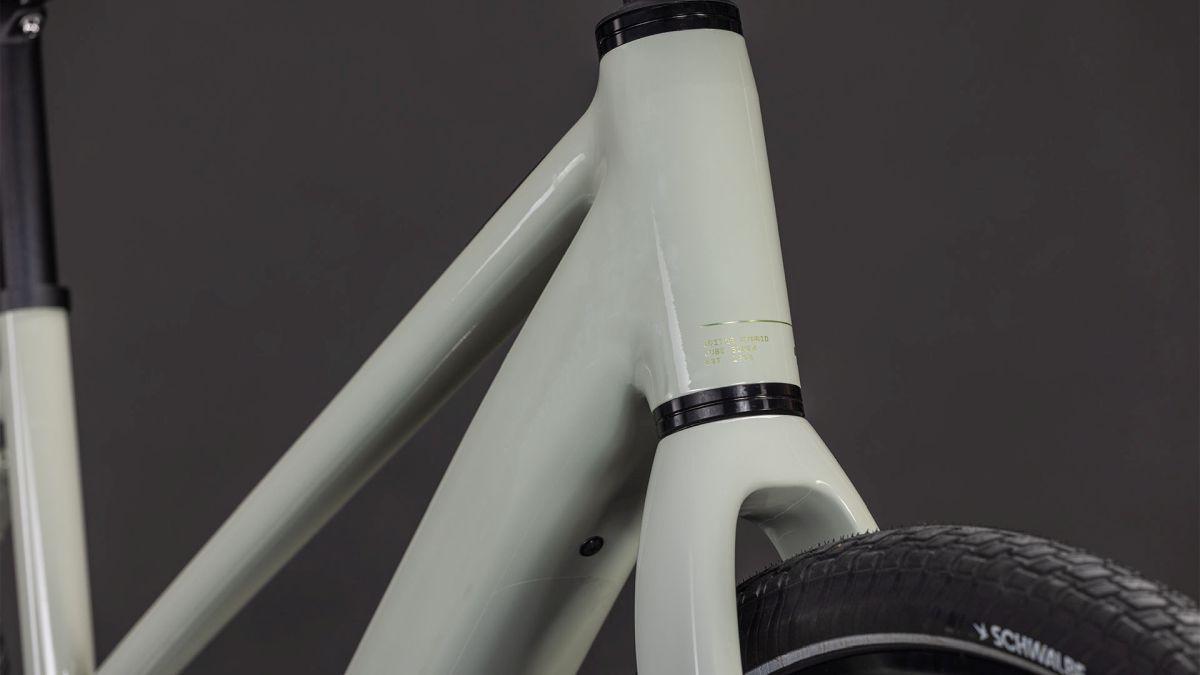 Der Trapezrahmen des Editor Hybrid gibt sich auf den ersten Blick vielleicht eher unauffällig, kommt aber mit zahlreichen cleveren Features auf die Straßen der Stadt. Er besteht aus leichtem, widerstandsfähigem Aluminium und wurde für einen cleanen, authentischen Look an den Hauptrohrverbindungen per Smooth Welding veredelt. Die Leitungen verlaufen komplett im Rahmeninneren, was die aufgeräumte Optik des Chassis' unterstreicht. On top haben wir den 400 Wh Akku formschön ins Unterrohr und den kleinen System Controller unauffällig ins Oberrohr integriert. Die leichte und dennoch stabile Vollcarbongabel setzt dem Komfort und dem Style die Krone auf. Damit ist ein unvergesslicher Auftritt in der City garantiert!