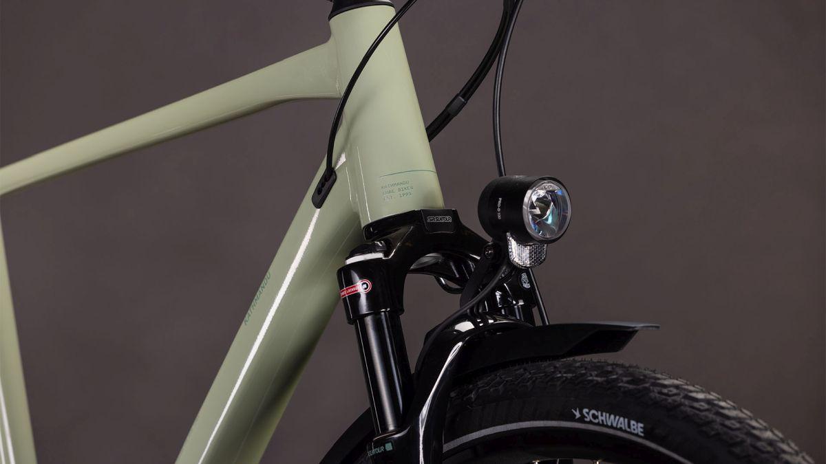 Wir hier bei CUBE sind unter anderem für unsere extreme Liebe zum Detail bekannt. Deshalb haben wir das Kathmandu auch mit dem integrierten Gepäckträger IC 3.0 ausgestattet, der nahtlos und formschön in unsere ACID Schutzbleche übergeht. Dazu gibt's am Hinterrad Aufnahmen für eine Flat Mount Scheibenbremse und einen Seitenständer. Seine cleane, aufgeräumte Optik verdankt das Chassis den im Smooth Welding Verfahren gestalteten Rohrverbindungen und im Inneren verlaufenden Zügen. So viel zum Aussehen. In Sachen Funktion haben wir den Hinterbau mit einer Steckachse versehen und ein konisches Steuerrohr für optimierte Stabilität und Lenkpräzision (selbst bei voller Beladung) verbaut. Also alles da, was es auf Tour braucht – den Rest machst du!