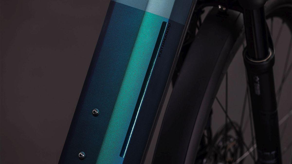 Der Tiefeinsteiger-Rahmen des CUBE Kathmandu Hybrid macht seinem Namen alle Ehre, denn das Auf- und Absteigen gehen damit supereinfach und das Abenteuer kann direkt losgehen! Doch da ist noch mehr, zum Beispiel der samt 800 Wh PowerTube Akku ästhetisch und sauber ins Design integrierte CX Motor von Bosch und unsere Efficient Comfort Geometry, die harmonisch mit der 100 mm Federgabel Hand in Hand arbeitet, was die Kontrolle vor allem bei schwierigen Bedingungen optimiert. Dazu die interne Zugverlegung, die den cleanen Look des Chassis unterstreicht. Was noch? Ein vielseitiges, beinahe unzerstörbares UDH für einfache Ersatzteilverfügbarkeit, ein integrierter Kettenschutz und unser stabiler, robuster, überaus formschöner integrierter Gepäckträger IC 3.0, auf dem alles Platz findet, was auf Entdeckertour mit muss.