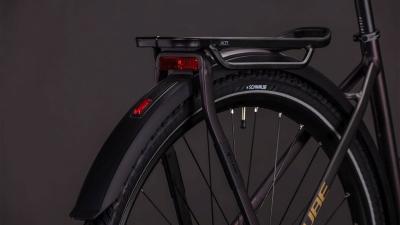 Der Trapezrahmen des Kathmandu aus dem Hause CUBE ist ein Sinnbild für klassische Eleganz! Der integrierte Gepäckträger IC 3.0 geht nahtlos und formschön in unsere ACID Schutzbleche über. Dazu gibt's am Hinterrad Aufnahmen für eine Flat Mount Scheibenbremse und einen Seitenständer. Seine cleane, aufgeräumte Optik verdankt das Chassis den im Smooth Welding Verfahren gestalteten Rohrverbindungen und im Unterrohr verlaufenden Zügen. So viel zum Aussehen. In Sachen Funktion haben wir den Hinterbau mit einer Steckachse versehen und ein konisches Steuerrohr für optimierte Stabilität und Lenkpräzision (selbst bei voller Beladung) verbaut. Also alles da, was es auf Tour braucht – den Rest machst du!