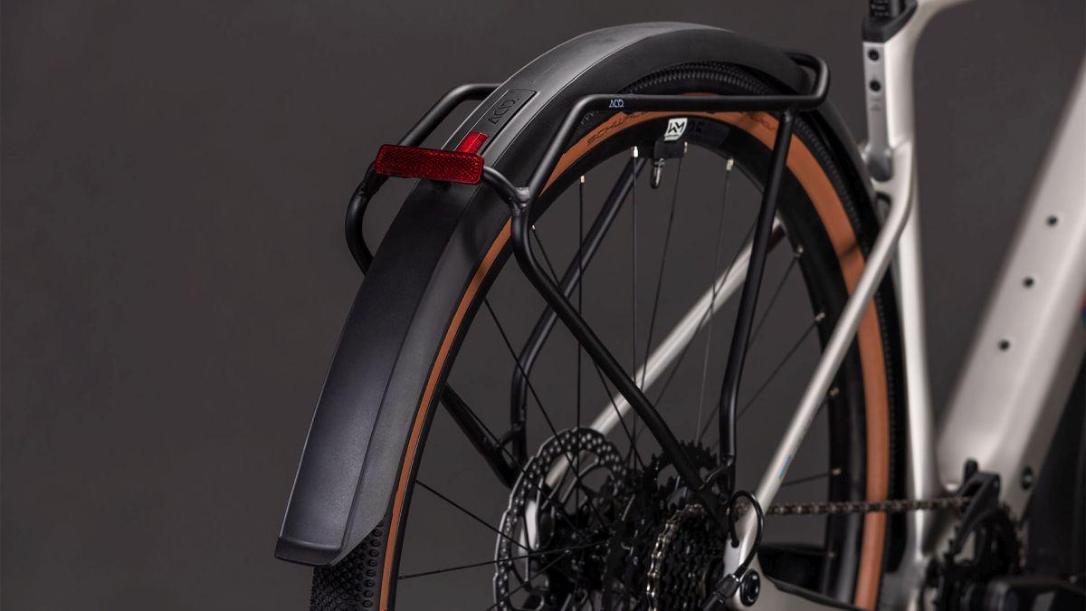 Vollausstattung ist Vollausstattung, Punkt. Insofern besteht das Zubehörpaket des Nulane Hybrid C:62 FE aus Schutzblechen, einem Gepäckträger hinten, Lichtern und einem Seitenständer, was es zum idealen Zweiradpartner für sämtliche Einsatzbereiche macht, ob täglicher Arbeitsweg oder längere Tour ins Gelände. Doch es kommt noch besser: Sein geschmeidig arbeitender, leichter Bosch SX Antrieb samt 400 Wh Akku hat bis zu 60 Nm Drehmoment im Angebot und verschwindet praktisch ungesehen im eleganten Rahmen aus leichtem C:62® Carbon. Selbst bei Nässe sicher und kraftvoll gebremst wird mit leistungsstarken hydraulischen Shimano Scheibenbremsen – komfortable, 45 mm breite Reifen von Schwalbe liefern den nötigen Grip. Last, but not least haben wir diesem E-Allrounder eine leichtgängige 9-fach Cues Schaltung von Shimano spendiert. Keine Zweifel, mit diesem Bike ist eine pünktliche – und entspannte – Ankunft am Ziel garantiert!