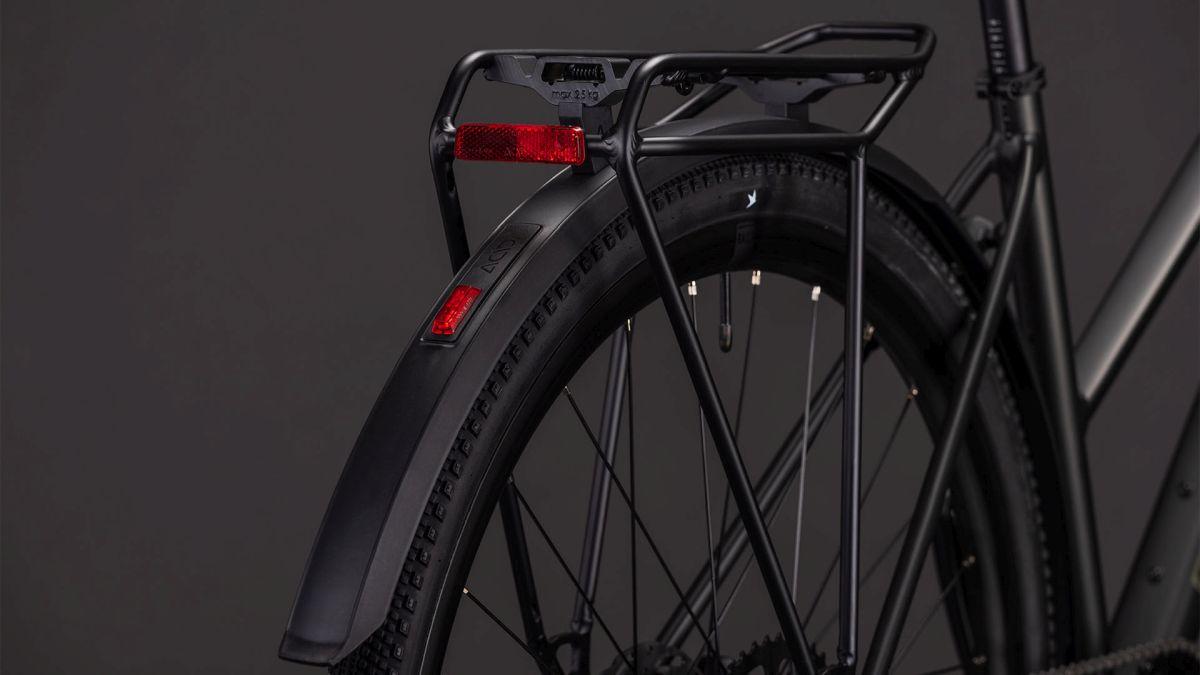 Der Trapezrahmen unseres vielseitigen Nulane wirkt auf den ersten Blick vielleicht unspektakulär, doch sein Komfort und Handling sind kaum zu übertreffen. Das Auf- und Absteigen gelingt spielend leicht, was den Alltag spürbar erleichtert. Die Kombination aus superleichten, doppelt konifizierten Aluminiumrohren und einer Vollcarbongabel hält das Gewicht niedrig und die Fahrdynamik hoch. Integrierte Schutzbleche, Gepäckträger, Beleuchtung und ein Seitenständer runden das Setup ab – perfekt für den täglichen Weg ins Büro oder entspannte Wochenendtouren. Ein echtes Highlight sind die Steckachsen vorne und hinten, die für stabile Kontrolle sorgen, egal ob mit oder ohne Gepäck unterwegs.