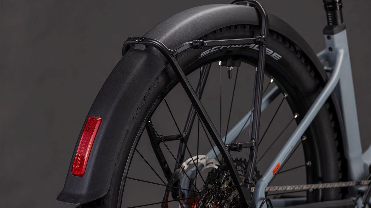 Das Reaction Hybrid Race FE steckt voller praktischer Details. Zum einen ist es standardmäßig mit Schutzblechen, einem robusten Gepäckträger, einem sauber ins Design integrierten Beleuchtungssystem und einem stabilen Seitenständer versehen. Außerdem mit einer versenkbaren Sattelstütze für optimiertes Handling auf steilen Trails. Zum anderen macht die breit gefächerte 12-fach Transmission 90 von Sram selbst anspruchsvolle Routen zum Kinderspiel. Für höchsten Fahrkomfort und 1a-Kontrolle haben wir 2.6 Zoll breite, griffige Schwalbe Pneus und eine einfach einstellbare Rockshox Recon Silver Luftfedergabel mit 120 mm Federweg (100 mm bei den kleinsten Rahmengrößen und den Tiefeinsteiger-Modellen) verbaut. Apropos Kontrolle: Die hydraulischen Louise 4-Kolben-Scheibenbremsen von Magura verzögern das Bike selbst bei Nässe zuverlässig und sicher. Wir haben uns also um alles gekümmert – jetzt heißt's aufsitzen und Spaß haben!