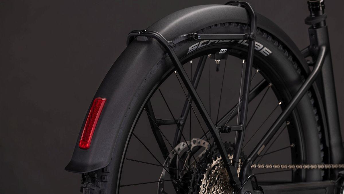 Weil wir dem Reaction Hybrid SLX FE ein Komplettset an Zubehör – Schutzbleche, Gepäckträger, Seitenständer und Lichtanlage – spendiert haben, ist es jeder Herausforderung gewachsen, ob täglicher Weg ins Büro oder lange Wochenendausfahrt ins Grüne. Dabei arbeiten der leistungsstarke Bosch CX Motor, der 800 Wh starke Akku und die breit gefächerte Shimano XT 12-fach Schaltung auf allen Routen und Anstiegen effizient Hand in Hand. Für erstklassigen Fahrkomfort auf holprigen Strecken haben wir eine Fox 34 Float AWL Federgabel verbaut. Wetterunabhängig sicher gebremst wird mit beherzt zupackenden hydraulischen XT 4-Kolben-Scheibenbremsen aus dem Hause Shimano. Dazu gibt's steife und zugleich leichte Newmen Performance 30 Laufräder, auf die wir 2.6 Zoll Schwalbe Pneus aufgezogen haben, und eine versenkbare Sattelstütze. Kurz: der perfekte Partner für mega Fahrspaß auf sämtlichen Touren!