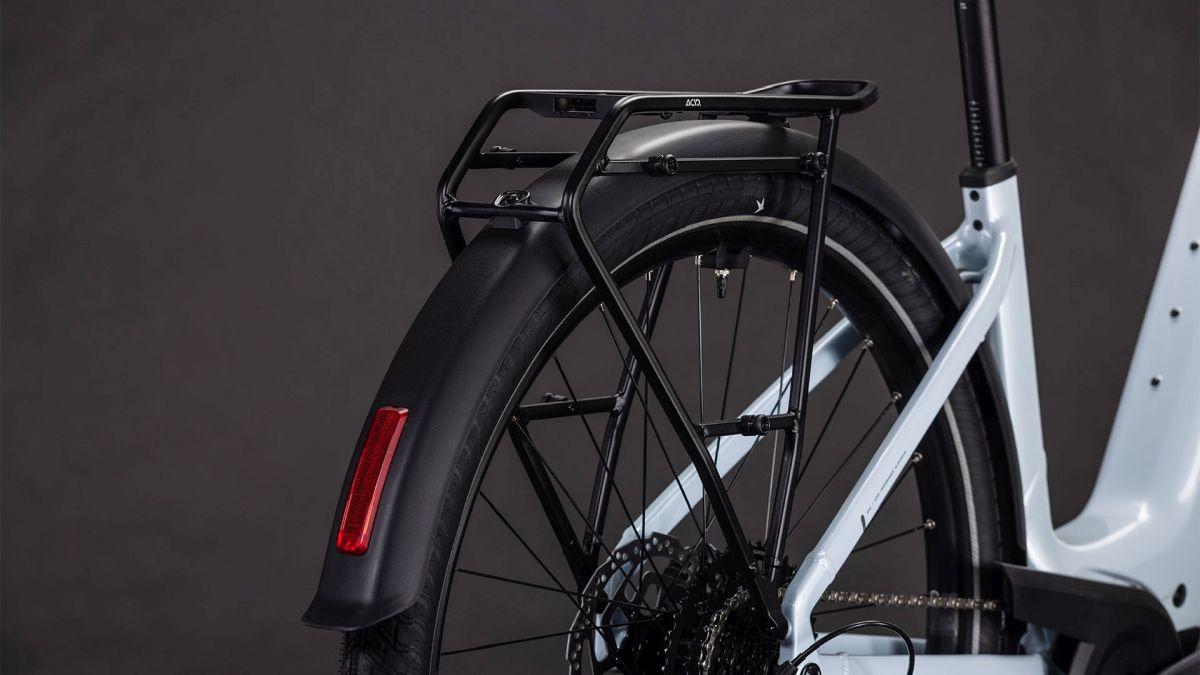 Der Superskill des Touring Hybrid Tiefeinsteiger-Rahmens? Natürlich sein tiefer Einstieg, der das Auf- und Absteigen erleichtert. Zugleich gibt's keinerlei Abstriche in Sachen Funktionalität und Vielseitigkeit. Auf dem ebenso stabilen wie stylishen integrierten Gepäckträger 2.0, findet alles Platz, was auf Tour mit muss. Auch der leistungsstarke Bosch Performance Motor fügt sich samt 600 Wh PowerTube Akku so formschön ins Design ein, dass er kaum auffällt. Was aber natürlich auffällt, ist der tolle Support im Vorwärts! Für ein komfortables und zugleich kontrolliertes Fahrgefühl, selbst auf holprigen Strecken, sind unsere Efficient Comfort Geometry und die Federgabel mit ihren 100 mm Federweg zuständig. Was noch? Ein ACID Kettenschutz, ein Seitenständer, Schutzbleche und Lichter.