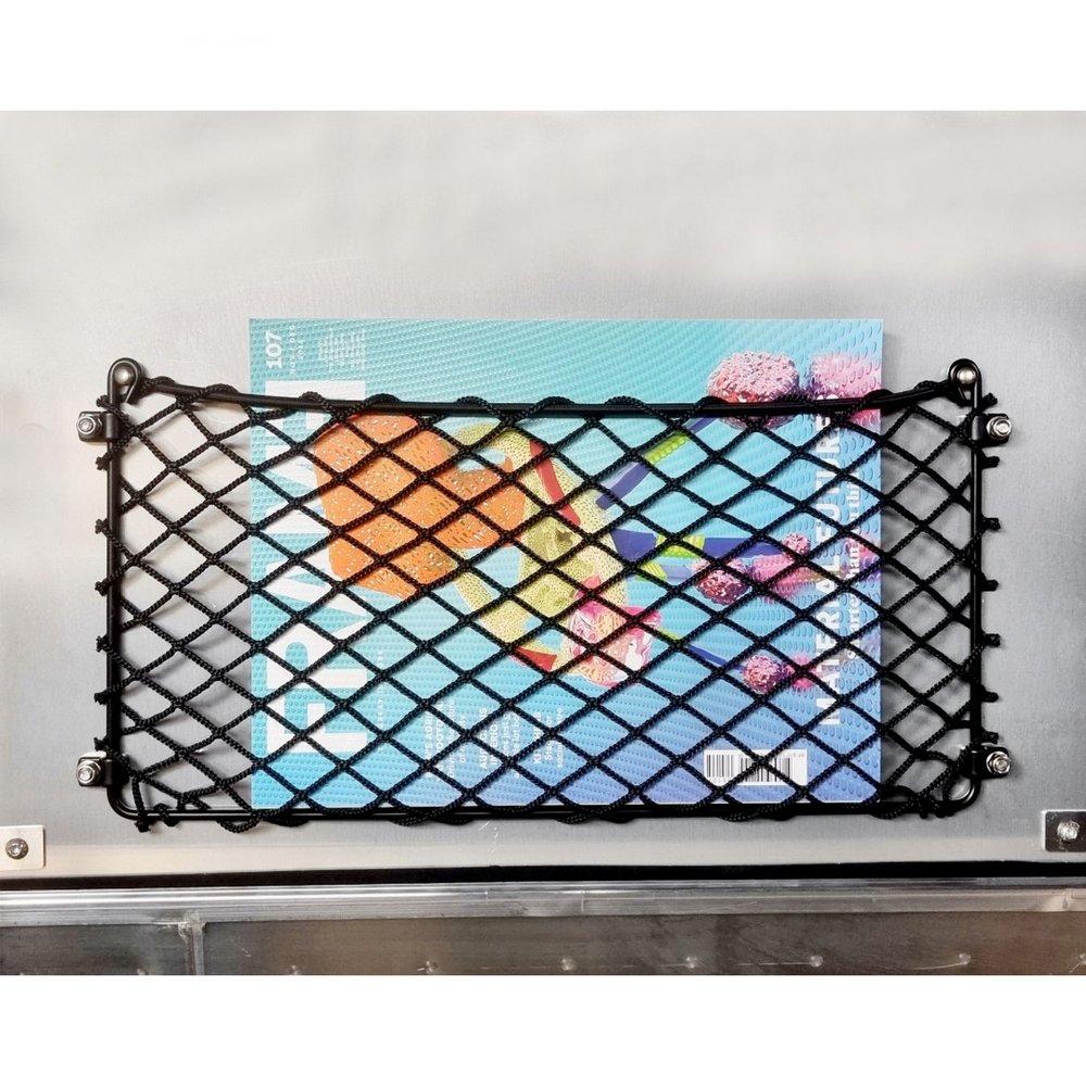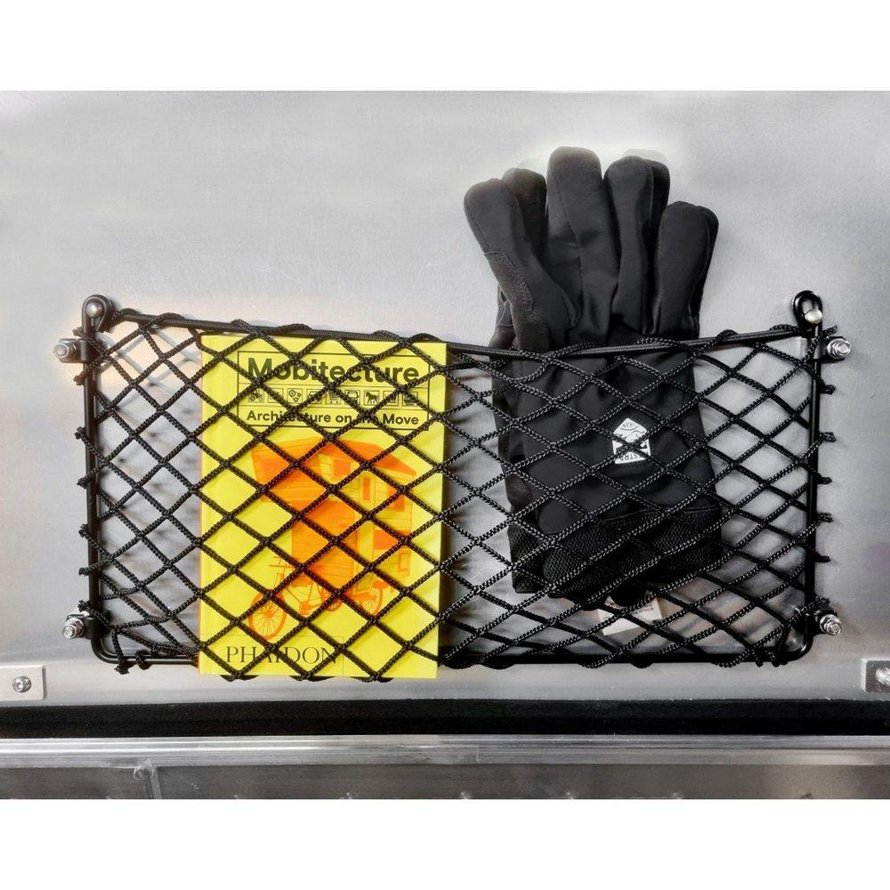 Mit dem Gepäcknetz schaffst Du Ordnung in der großen Alukiste. Die Dinge, die unterwegs schnell zur Hand sein müssen, sind schnell und übersichtlich verstaut. Das Gepäcknetz ist gross genug für Zeitschriften, eine Arbeitsmappe mit Lieferscheinen, Deinen Geldbeutel, Handy, Obst, Handschuhe, eine Mütze und vieles mehr.