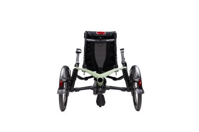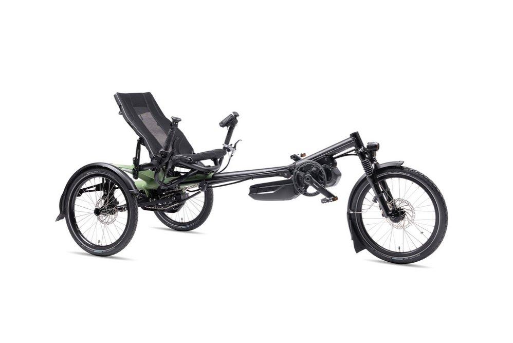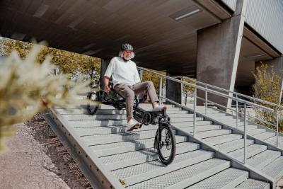 Das Kettwiesel ONE von Hasebikes besticht durch sein einzigartiges Fahrwerk. Kopfsteinpfaster und Unebenheiten meistert es mit Bravour. Der Wendekreis ist enorm klein und die höhenverstellbare Sitzposition sorgt für die optimale Ergonomie. Das Lenken mit dem Untenlenker geschieht intuitiv und sorgt für eine entspannte Haltung auch auf längeren Strecken.