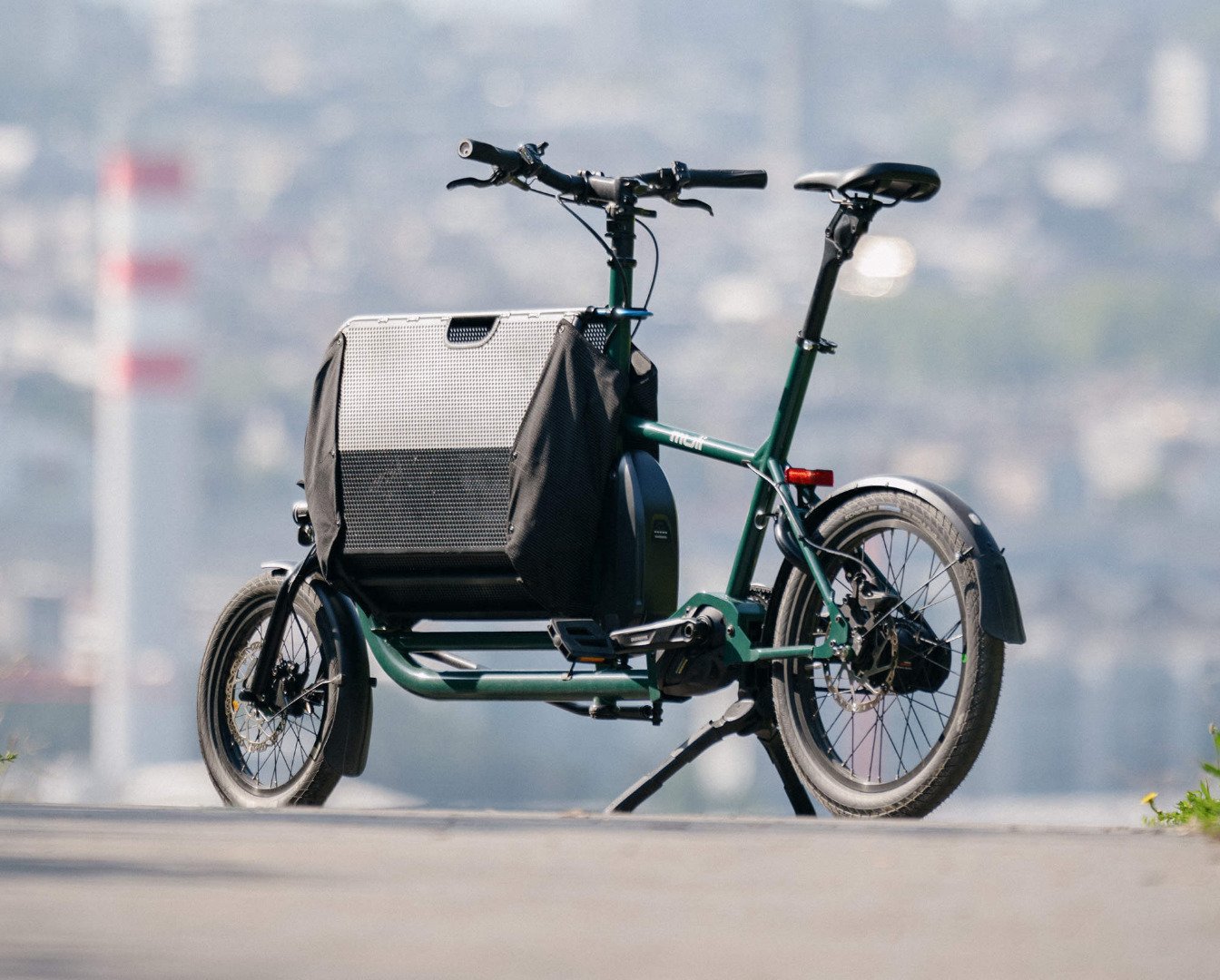 Das Besondere: ein kompaktes, sportliches Lastenrad mit einklappbarer Ladefläche, perfekt für die Stadt.
