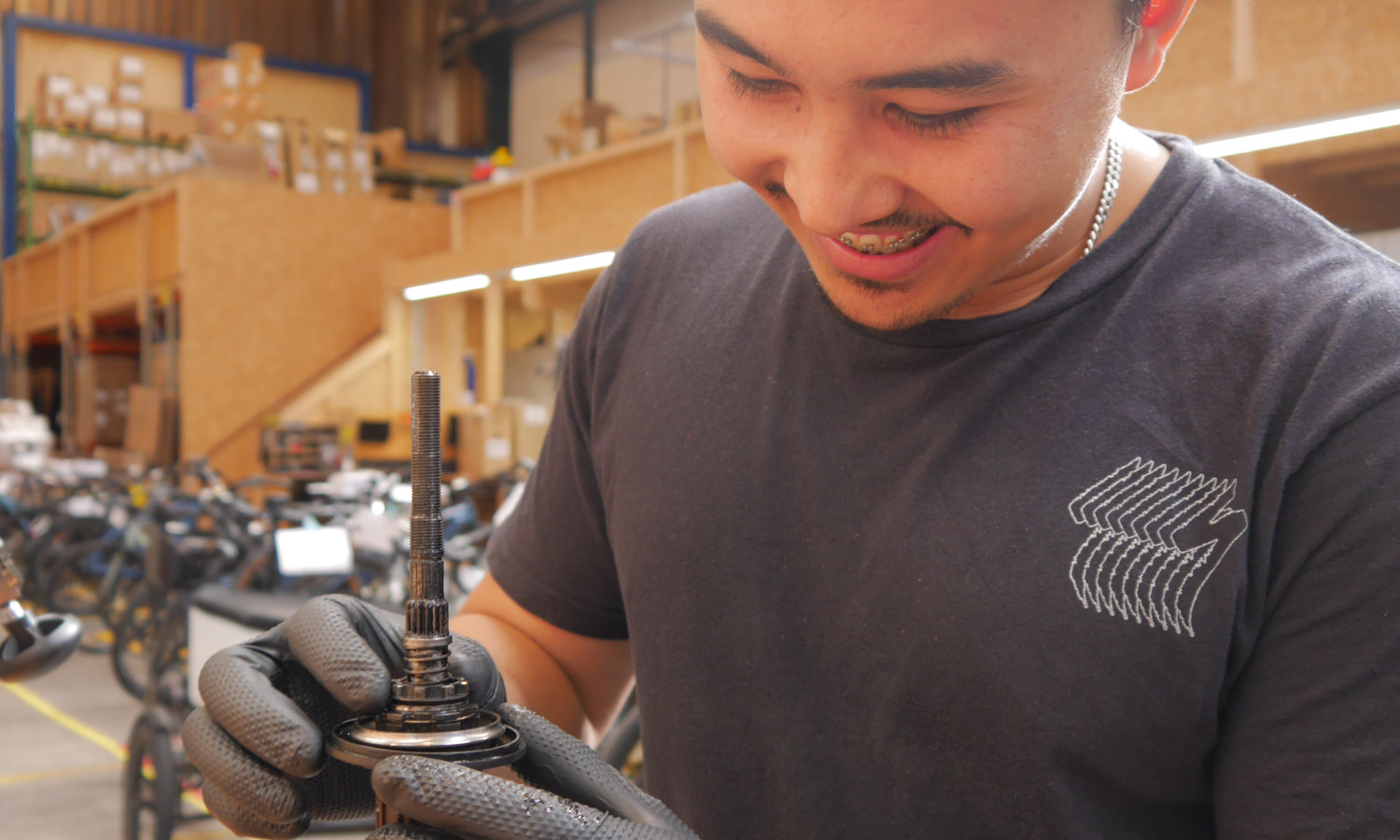Nach der dreijährigen Lehre hält er nun mit Stolz sein Berufs-Diplom in seinen Händen. Dafür hat er an der Abschlussprüfung Federgabeln fein säuberlich revidiert, elektronische Schaltungen präzise eingestellt, Räder aufgespeicht, hydraulische Scheibenbremsen entlüftet und Lenkerband perfekt gewickelt. Mit seinem Fachwissen und handwerklichen Geschick wusste er die Prüfungsexperten zu überzeugen.