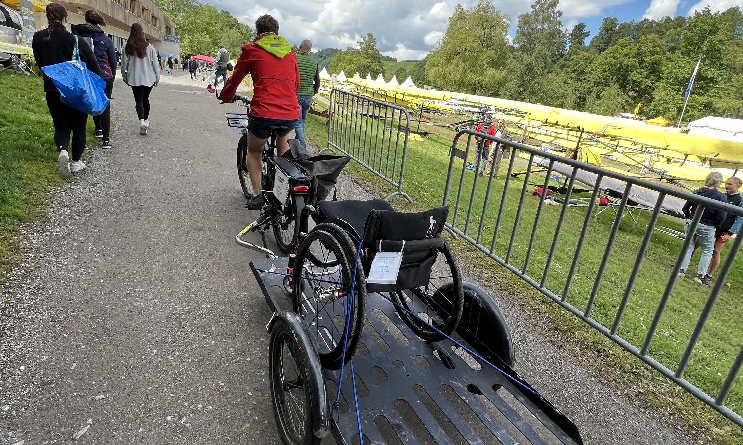 Das Gespann aus dem Multicharger von Riese&Müller und dem Transportanhänger von Hinterher bietet grosse Transport-Kapazität, fährt wieselflink durch die engen Wege am Rotsee und das Getümmel an den Renntagen und wirkt erst noch äusserst sympathisch. So gelangen zum Beispiel die Rollstühle bei den Para-Rennen rechtzeitig vom Bootseinstieg zur Siegerehrung.