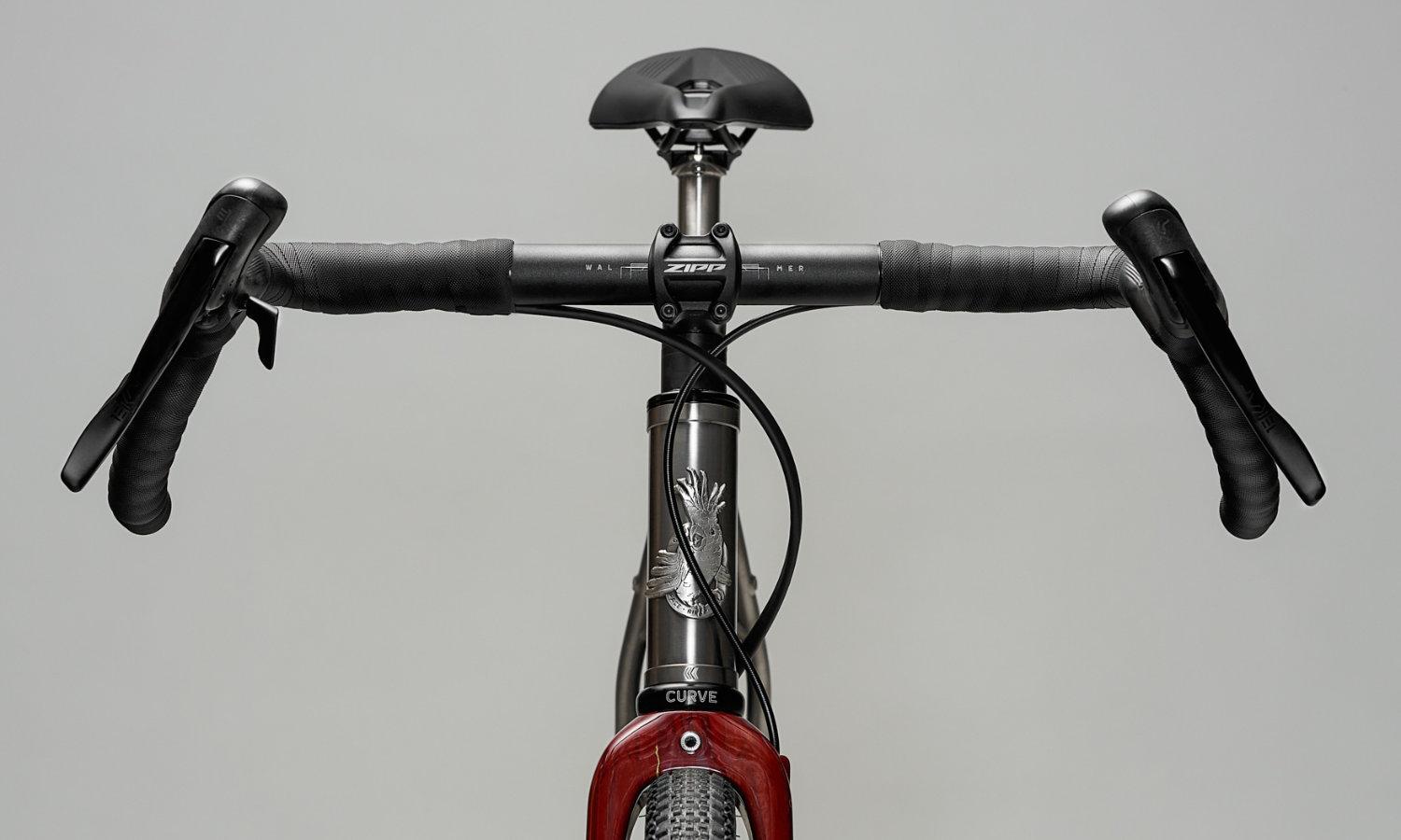 Curve hat zu ihren Velos einige Komponenten entwickelt, zum Beispiel besonders breite Gravel-Lenker, Steckachsen an welchen Gepäckträger montiert werden können, Gabel, Lenkerbänder. Auch diese Teile führen wir bei uns im Sortiment.