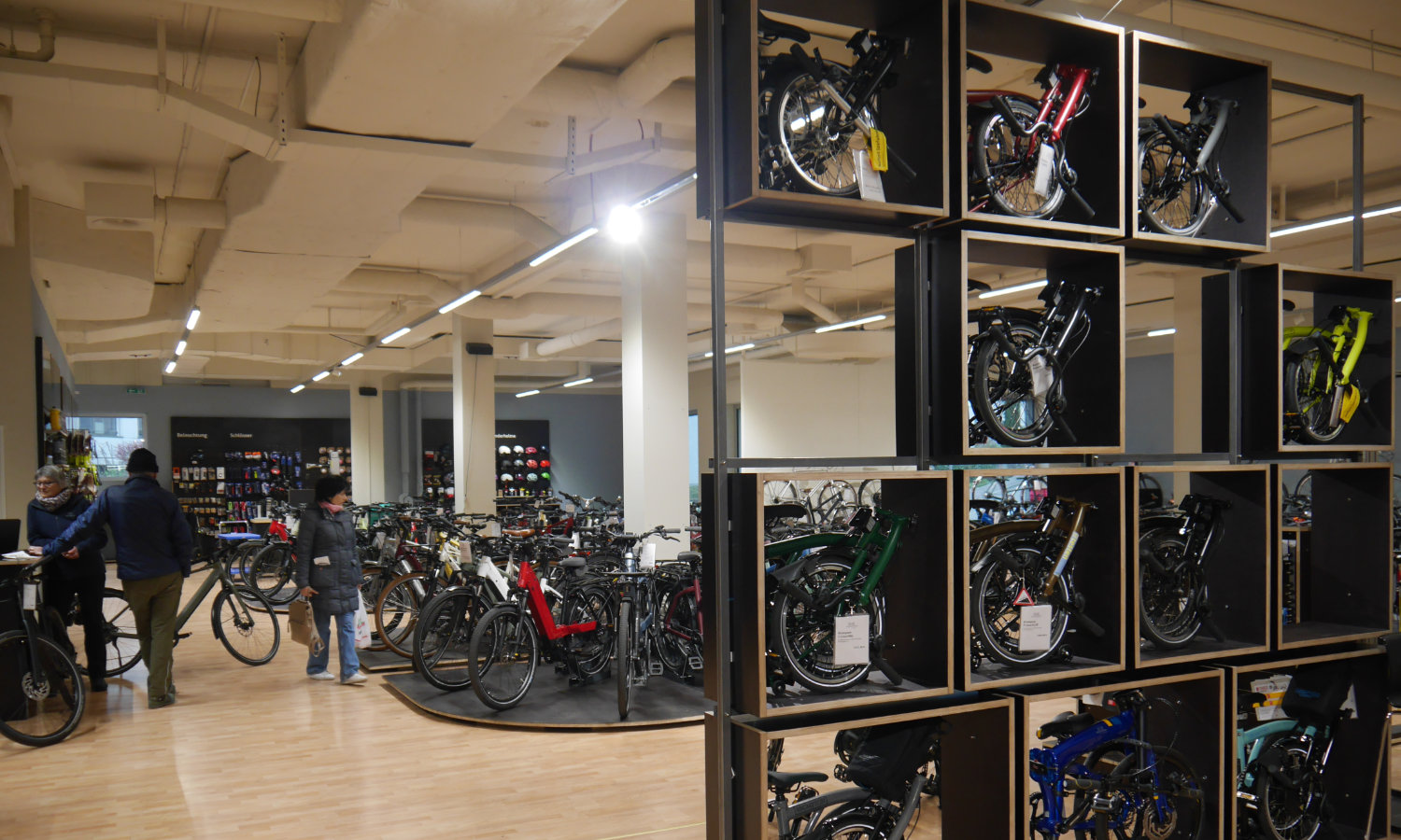 In seiner Grundkonzeption hat der «alte Laden» 13 Jahre gut funktioniert. Ganz «Velociped-like» haben wir nun den neuen Laden mit etwas externer Beratung konzipiert und auf die aktuellen Bedürfnisse angepasst. Planung und Umbau haben wir dann selber gemacht und für einige Tage die Tastatur gegen Inbusschlüssel, Zentrierständer, Akkuschrauber, Handkreissäge und Wasserwaage getauscht. Für die neue Einrichtung konnten wir so zu rund 70 % bestehendes Material aus dem alten Laden wiederverwenden, was unserem Anspruch an Nachhaltigkeit entspricht.