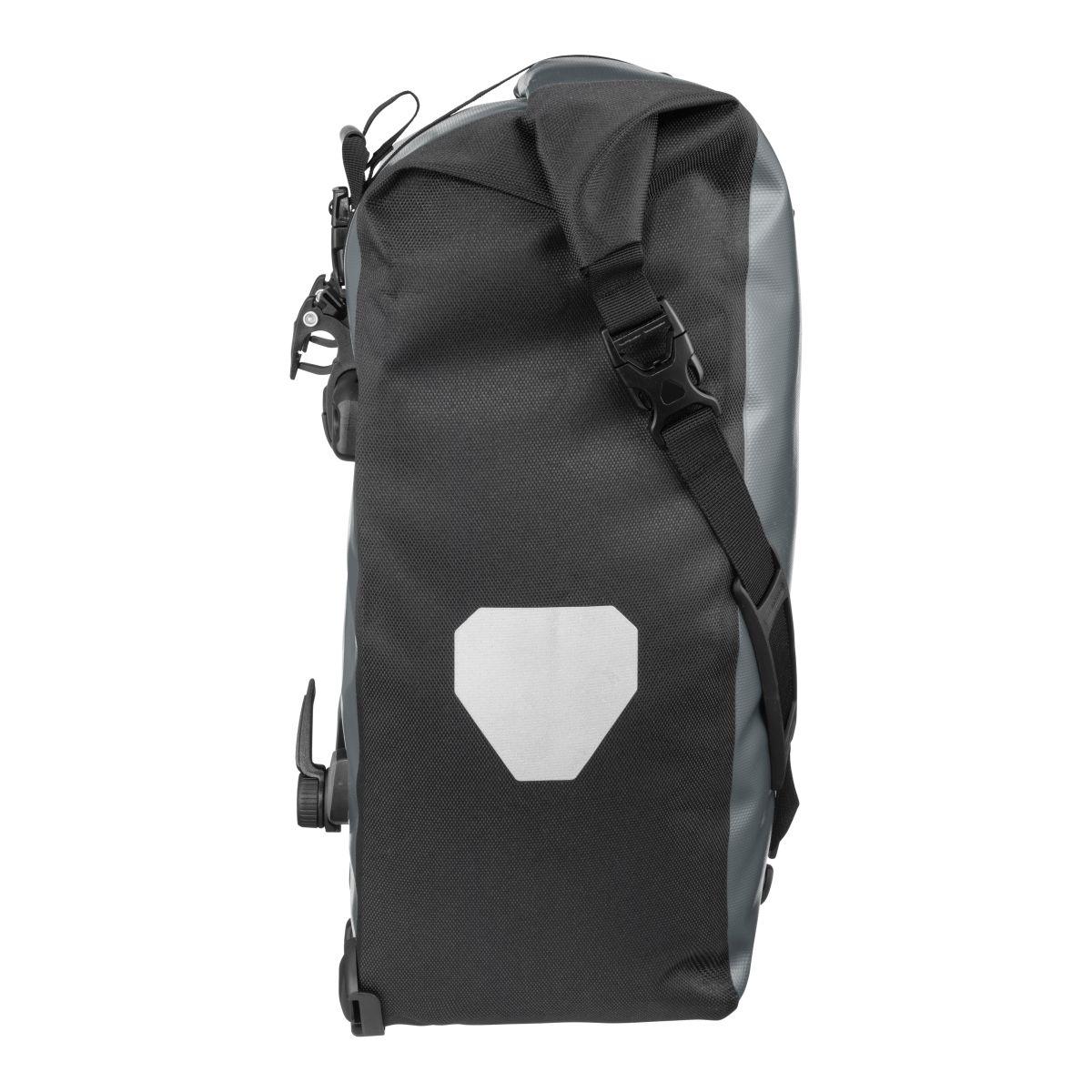 Hinterradtasche (Paar) mit Rollverschluss; Quick-Lock2.1 System bis 16 mm Gepäckträgerrohr; PVC-beschichtetes Polyestergewebe; inkl. Innentasche; großflächige Reflektoren; Tragegurt. Kombinationsmöglichkeit mit Rack-Pack 24 L und 31 L auf dem Hinterradgepäckträger.