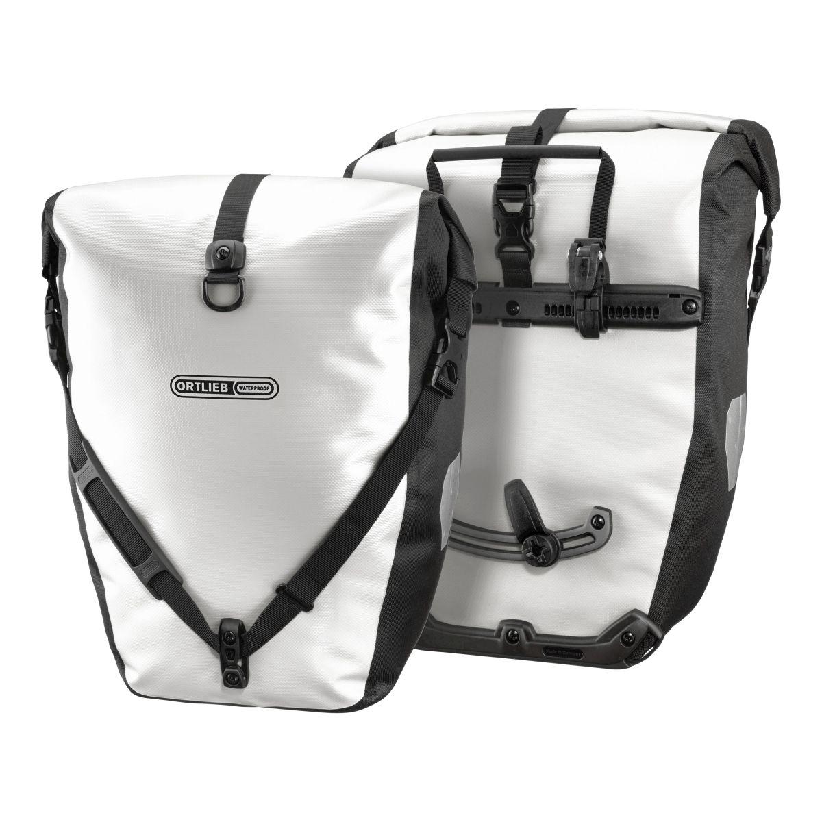 Hinterradtasche (Paar) mit Rollverschluss; Quick-Lock2.1 System bis 16 mm Gepäckträgerrohr; PVC-beschichtetes Polyestergewebe; inkl. Innentasche; großflächige Reflektoren; Tragegurt. Kombinationsmöglichkeit mit Rack-Pack 24 L und 31 L auf dem Hinterradgepäckträger.