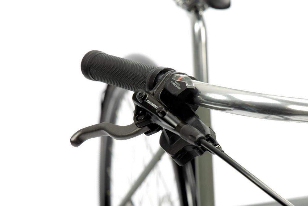 Das schöne, leicht Frauen-Stadt-, Touren- und Ausflugsvelo von unseren Freunden in Helsinki. Mit seinen klug abgestimmten 20 Gängen erfreut es sich auch über Velotouren in hügeligen Gegenden. Dei mechanischen Scheibenbremsen verzögern zuverlässig auch auf langen Abfahrten und bei misslichen Bedingungen. Wer will, kann das Velo mit ener guten Nabendynamo-Lichtanlage ausgerüstet haben.