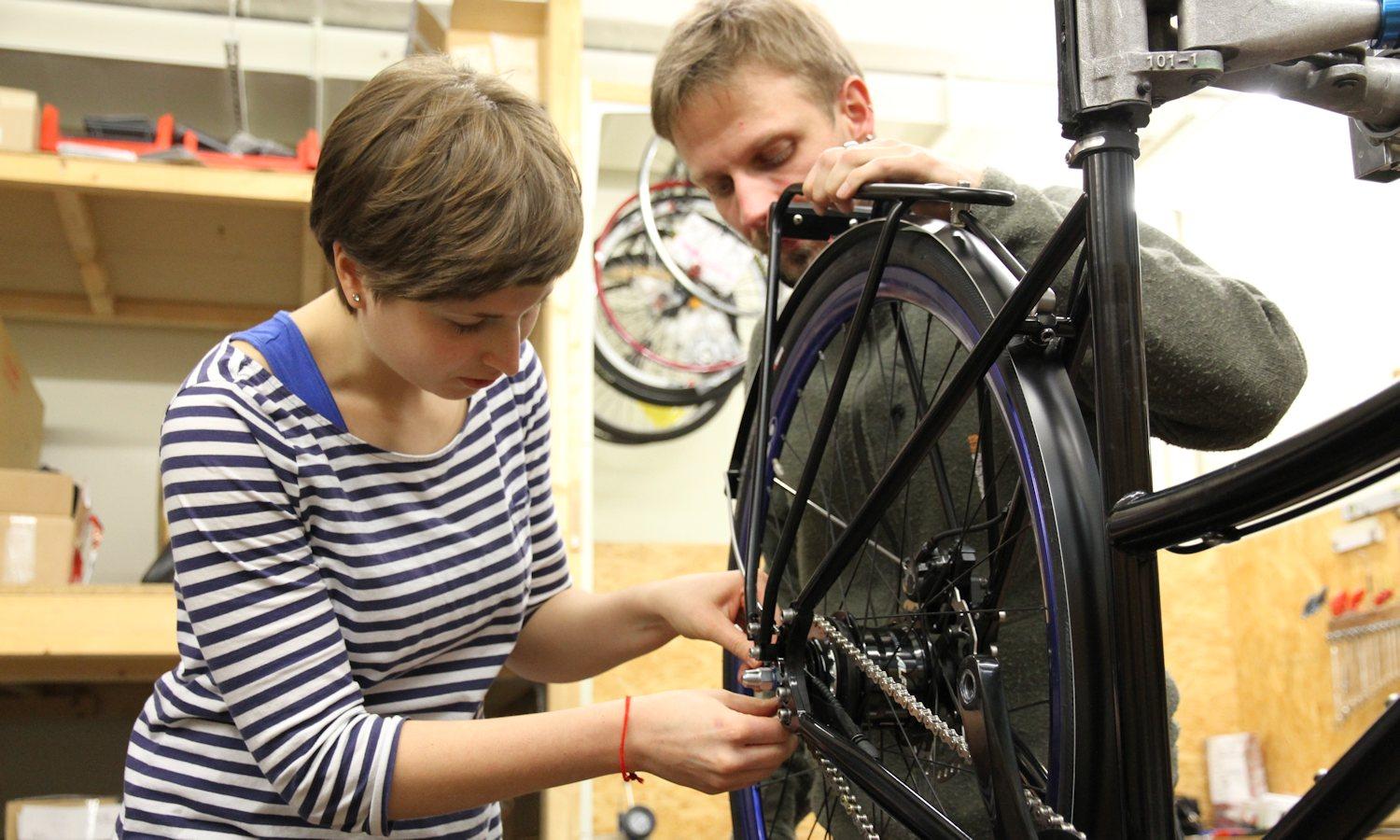 Platten flicken, Scheibenbremsen warten, Schaltung einstellen, oder Notreparaturen unterwegs im Gelände: In unseren Reparatur-Kursen geben unsere Mechaniker:innen ihr Wissen weiter. Die kleinen Gruppen und die Infrastruktur unserer Werkstatt sorgen für lehrreiche und angenehme Kurse.