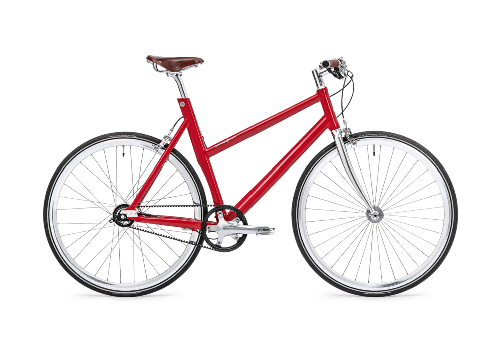 Lotte eifert der Sportlichkeit ihres Bruders Ludwig nach und setzt zugleich den Fokus auf entspannte Fahrten im Alltag. Dazu trägt die Shimano Alfine-Nabenschaltung bei sowie eine komfortablere Abstimmung bei der Rahmengeometrie dank abgesengtem Oberrohr, höherem Steuerohr und tieferem Tretlager. Lichtanlage und Schutzbleche können bei Bedarf leicht nachgerüstet werden – ausgewählte Komponenten integrieren sich dabei perfekt, um die reduzierte Designsprache und typischen Schindelhauer-Charakter beizubehalten.