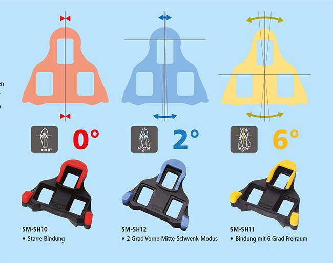 Die Festigkeit ist darauf ausgelegt, einen perfekten Verbund mit SPD-SL Pedalen zu ergeben. Diese Platten weisen die für SPD-SL Pedale geeignete Form auf. Die zum Gehen geeignete Ausführung weist rote Aufstandspunkte auf. Diese verhindern Verschleiss des in die Bindung eingreifenden Plattensegments.