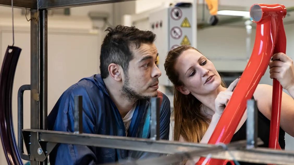 Das Konfigurieren der TdS-Velos passiert meistens bei uns im Laden nach einer ausgiebigen Probefahrt mit einem Testbike. Wir beraten bei der Auswahl der Komponenten, sodass genau das Velo entsteht, welches dem Nutzen der Kundin, des Kunden am besten entspricht. Danach wird bei Tour de Suisse der Rahmen in der Wunschfarbe lackiert, das Velo nach den individuellen Wünschen in der Fabrik in Kreuzlingen aufgebaut und nach einer sorgfältigen Qualitätskontrolle an uns ausgeliefert. Nach ca. 4 Wochen trifft es bei uns ein.