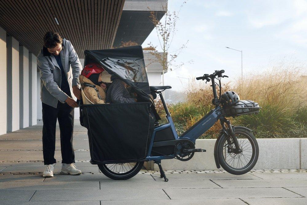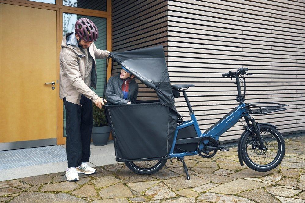 Der Wetterschutz ist eine innovative und nachhaltig designte Ausstattungsoption für den ganzjährigen Einsatz der beliebten Longtail-E-Bikes von Riese & Müller: Damit bleiben sowohl die kleinen Passagiere als auch das Gepäck trocken und windgeschützt bei jedem Wetter. Der Longtail-Wetterschutz besteht aus einem Ober- und einem Unterteil, die einzeln oder zusammen angebracht werden können.