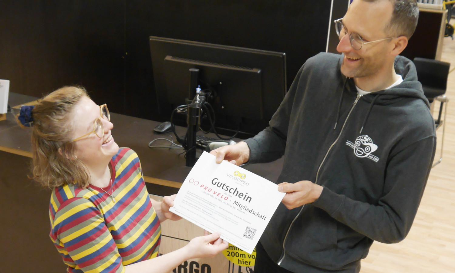 - fertig! Das Velociped zahlt dein Mitglieds-Beitrag für das erste Jahr